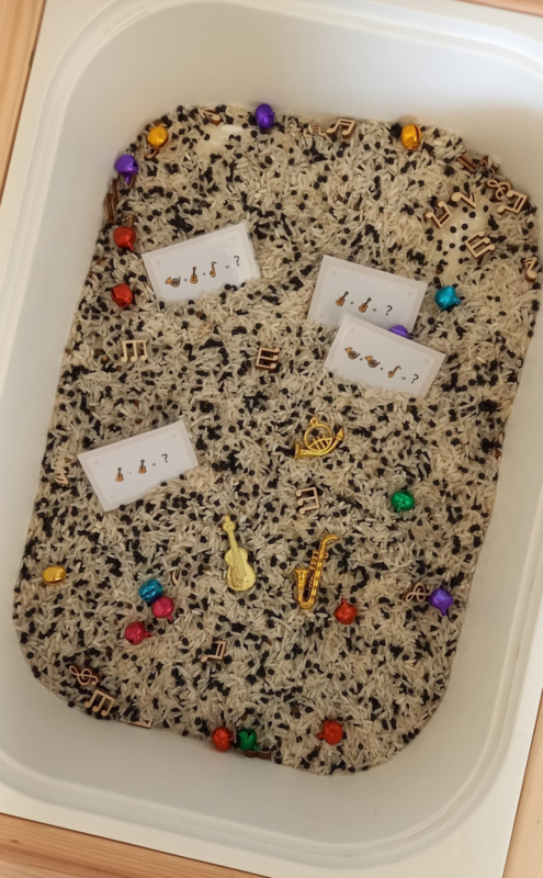 Breng muziek tot leven in de speeltafel met dit unieke Sensorische Thema Pakket Muziek! Speciaal samengesteld om kinderen spelenderwijs te laten ontdekken, luisteren en creëren. De combinatie van rijstmix, belletjes en mini-instrumentjes nodigt uit tot eindeloos exploreren, tellen, sorteren en rijgen. Ideaal voor thuis, in de opvang of in het kleuteronderwijs.