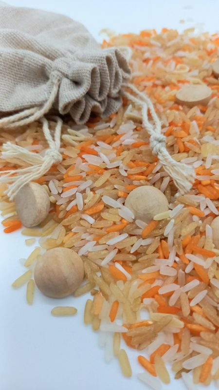 Gebruik het bijvoorbeeld bij de Speelrijst Sint Kruidnootjes Mix om de houten kruidnootjes in te verstoppen — een leuke, thematische toevoeging aan het Sinterklaasspel!