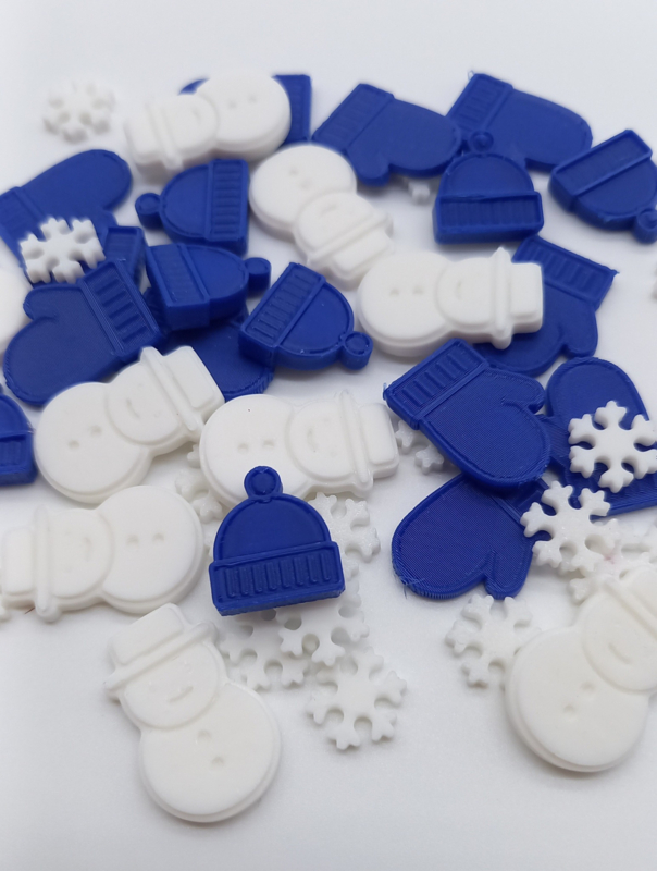 Set van 50 Schatzoekertjes, afm. ca 1 - 1,5 cm (sneeuwvlok, sneeuwpop, handschoen, muts)