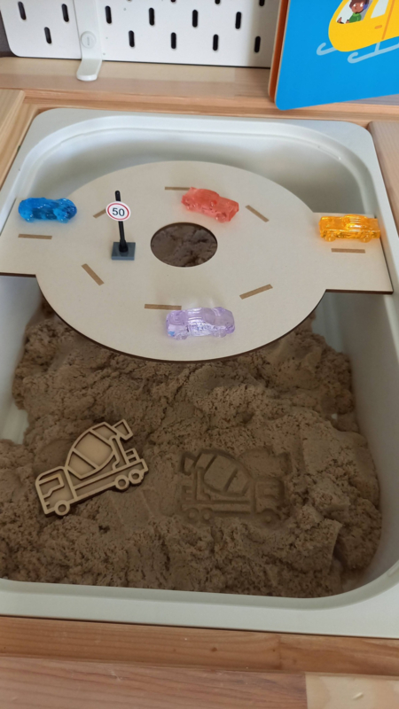 De autootjes passen bovendien mooi in een sensorische speelbak. Combineer ze bijvoorbeeld met speelrijst, gekleurde steentjes of wegen van karton en laat kinderen hun eigen speelwereld bouwen.