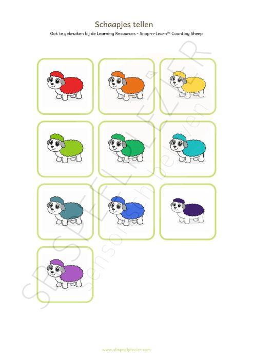 Deze kaartjes zijn leuk te combineren met de PDF Tellen en kleuren leren met schaapjes. (zie foto 5, los bij te bestellen). Kinderen kunnen de schaapjes bij de juiste kaart leggen en zo actief oefenen met tellen, kleuren en koppelen.