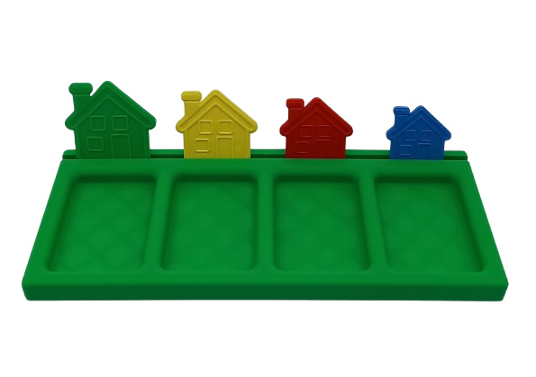 De stevige sorteertray heeft vier vakjes en een smalle uitsparing waarin de huisjes geplaatst kunnen worden. Zo blijft het spel overzichtelijk en kunnen kinderen gericht sorteren op kleur, grootte of volgorde. Ideaal voor gebruik op tafel, in een speelhoek of als aanvulling op een sensorische speelbak.