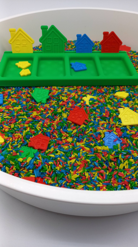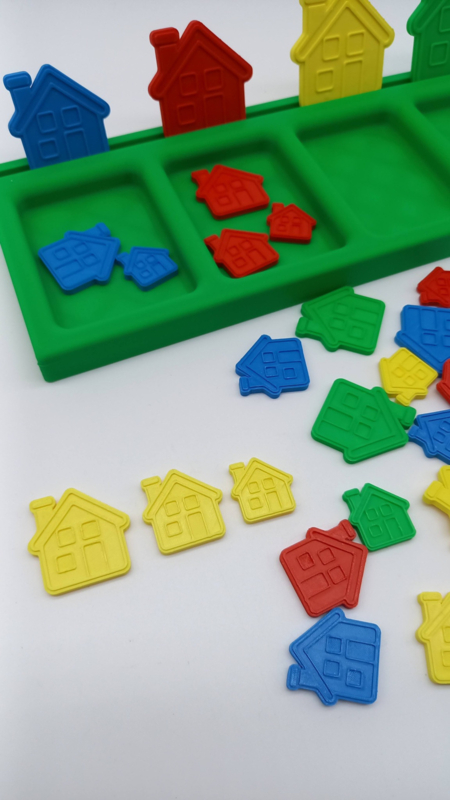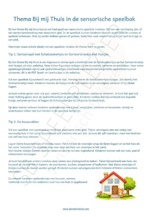 EXTRA TIP (zie foto 8, 9, 10) : Binnen dit thema zijn ook aanvullende materialen verkrijgbaar, zoals de bundel Speel- en Leerhuisjes, de Schatzoekertjes Huisjes en het Sorteerstraatje met Huisjes. Deze sluiten mooi aan bij de inhoud van deze bundel en bieden extra speelmogelijkheden.