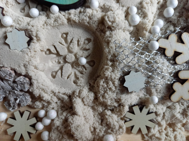 Het Creall Kinetisch speelzand is heel zacht, droogt niet uit en blijft houdbaar.