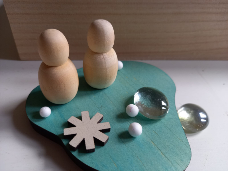 - 2 houten sneeuwpopjes