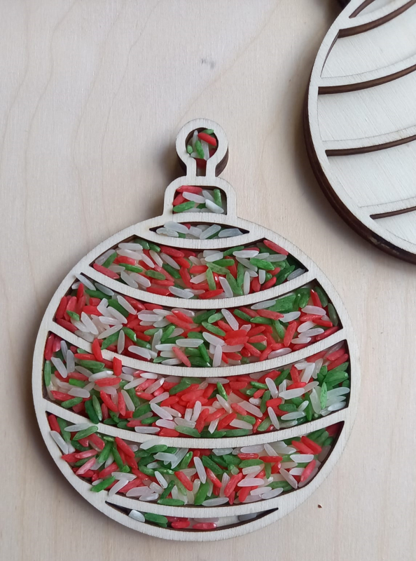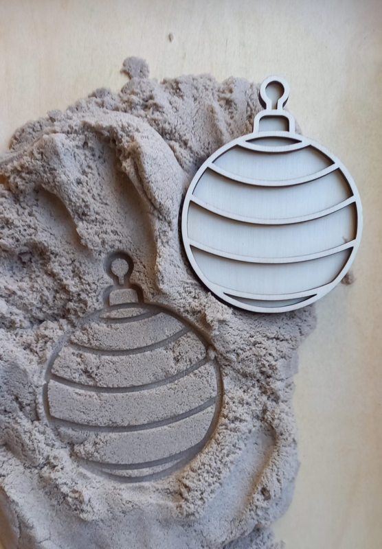 Terug naar artikeloverzichtMooie houten vulvorm Kerstbal voor speelzand en speelrijst. Gebruik de kerstbal als vulvorm of stempel er de mooiste vormen mee!